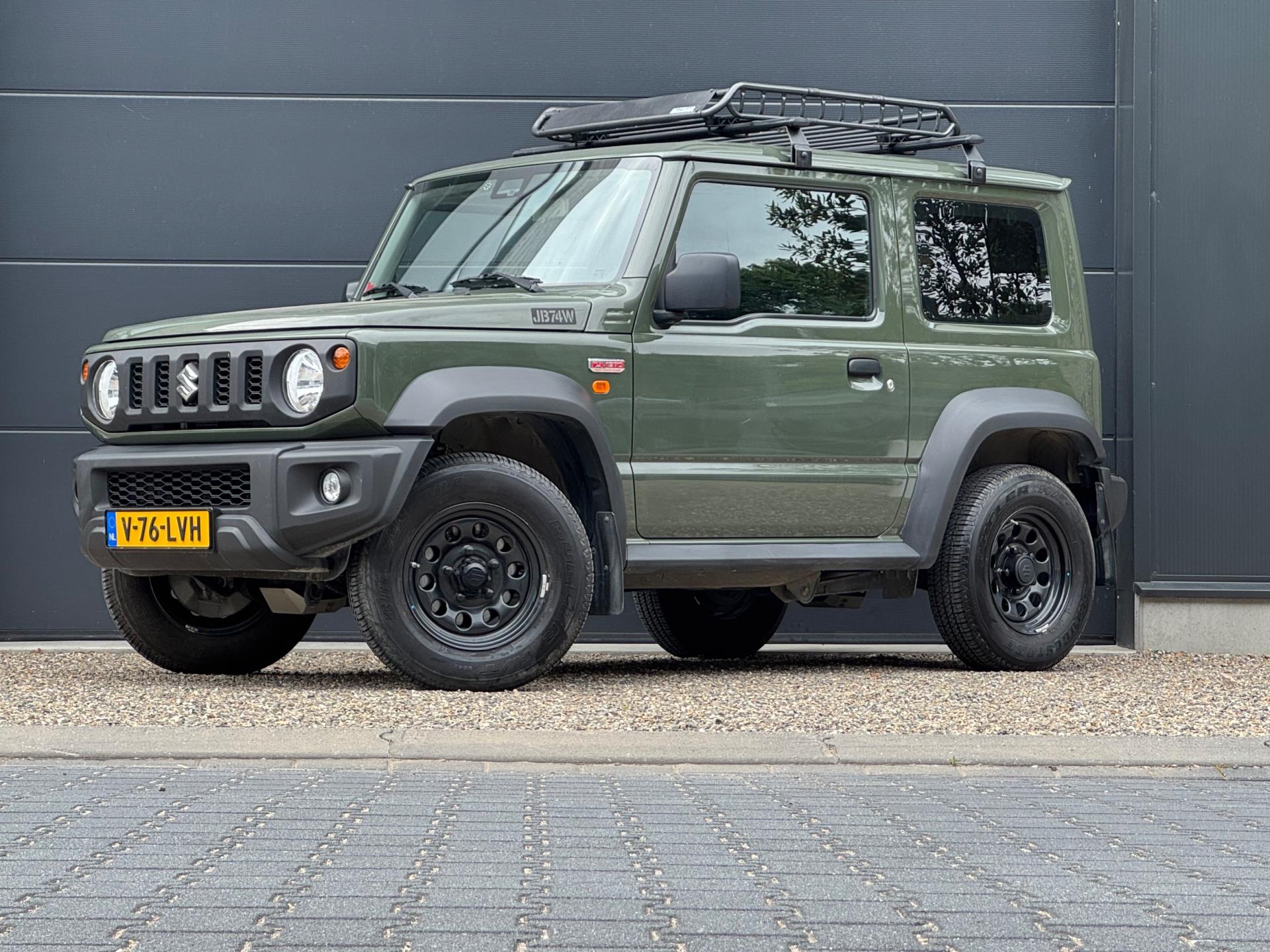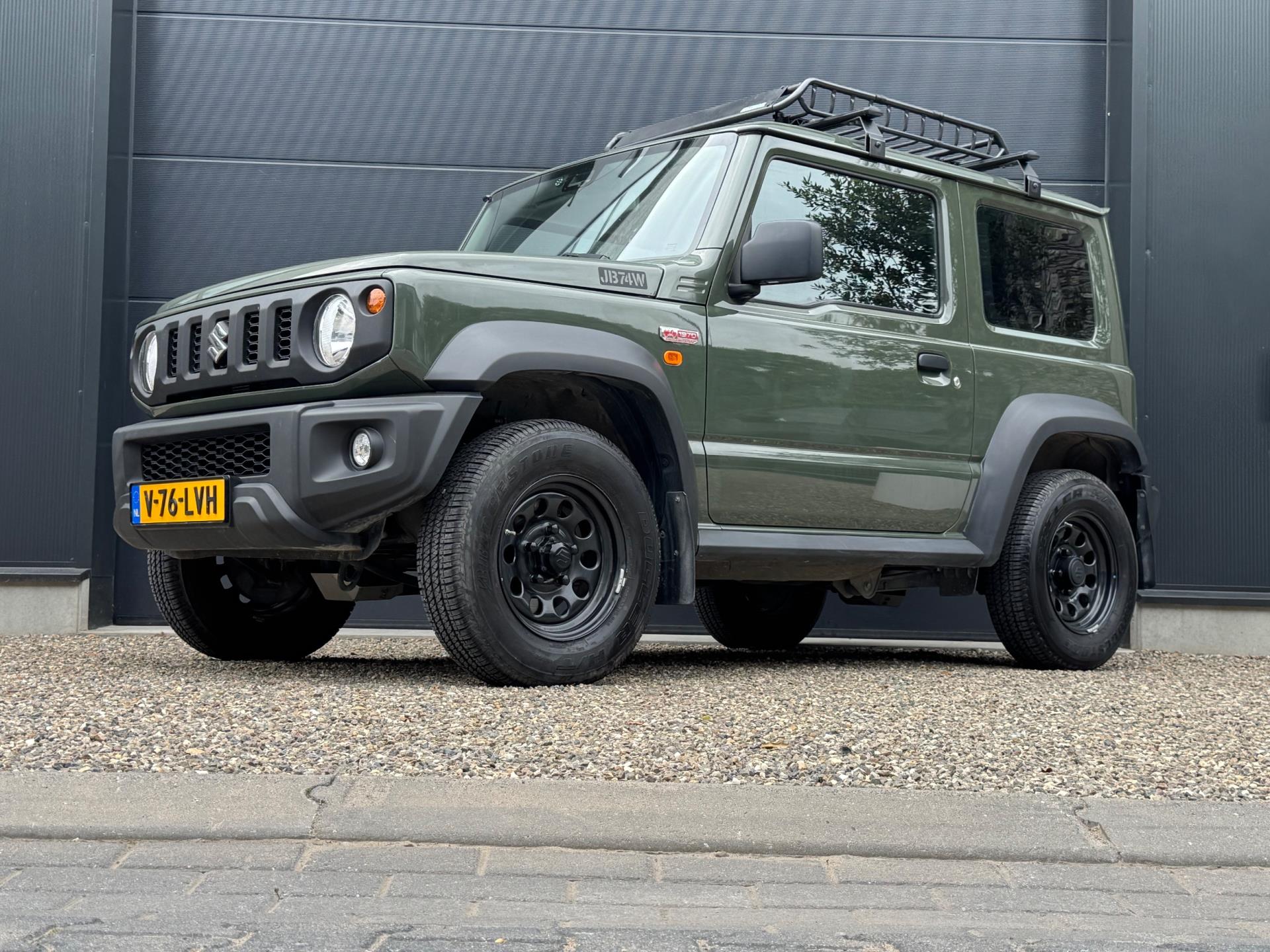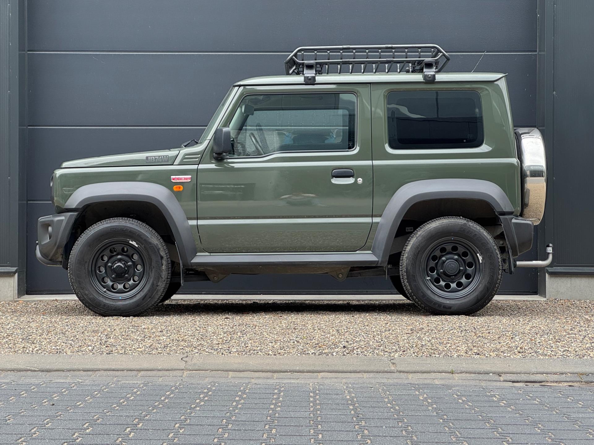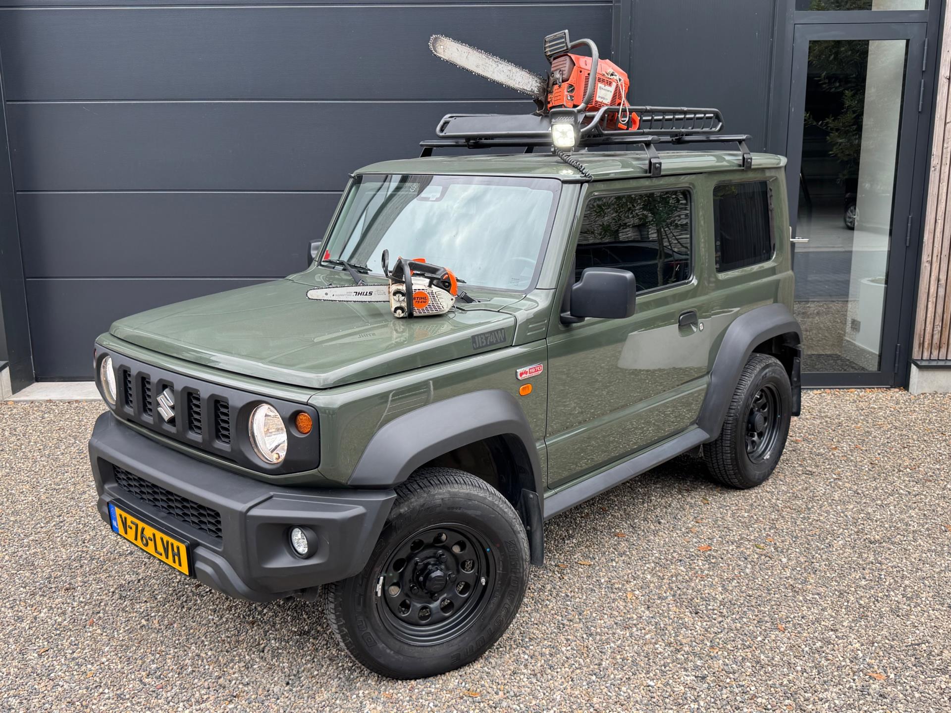 Een Suzuki Jimny zoals hij hoort te zijn in de mooie groene kleur 'Verde Jungle', voorzien van leuke accessoires. Deze auto is afkomstig van de eerste eigenaar. Grijs kenteken, marge (komt dus geen btw meer bij).