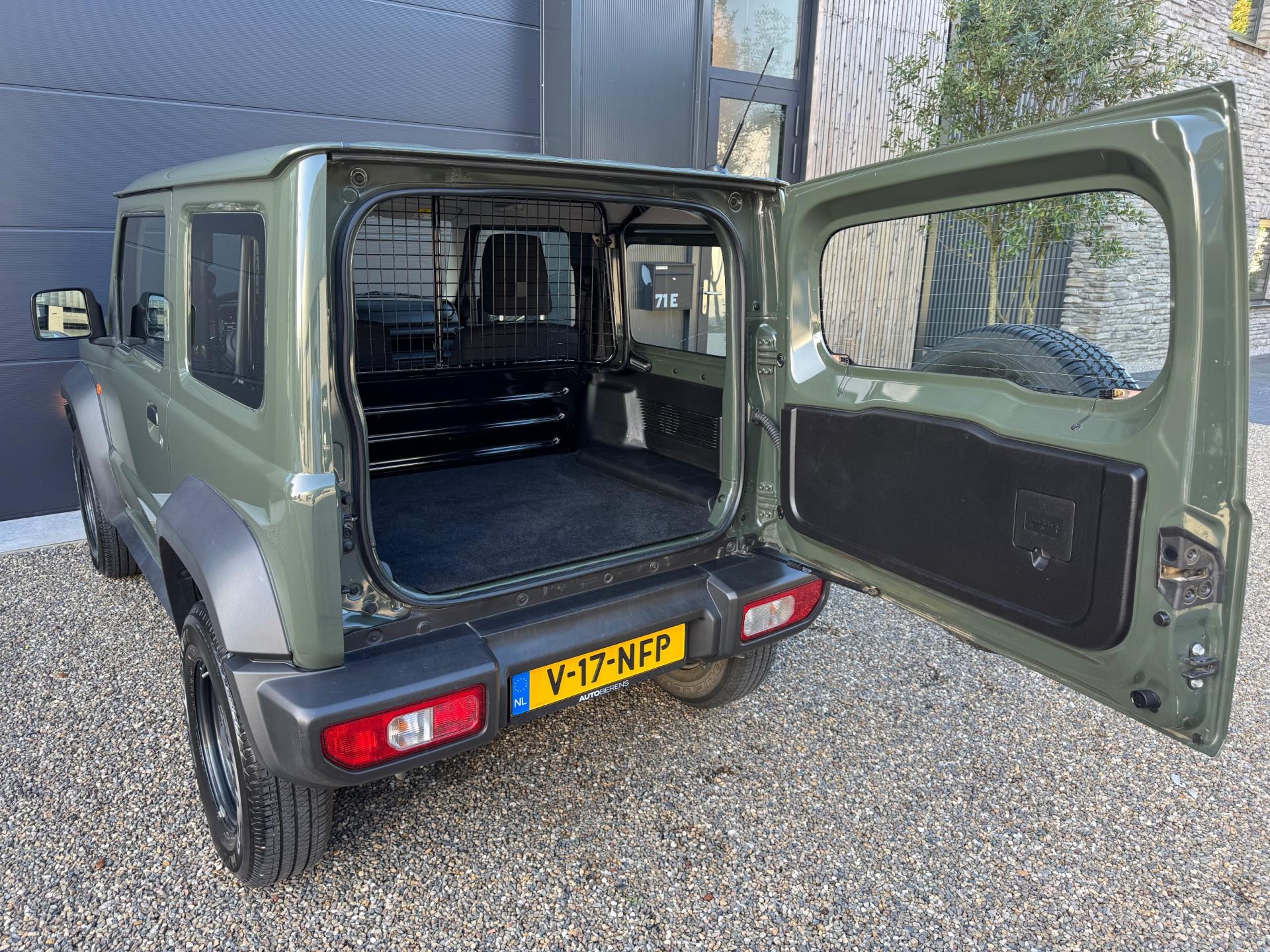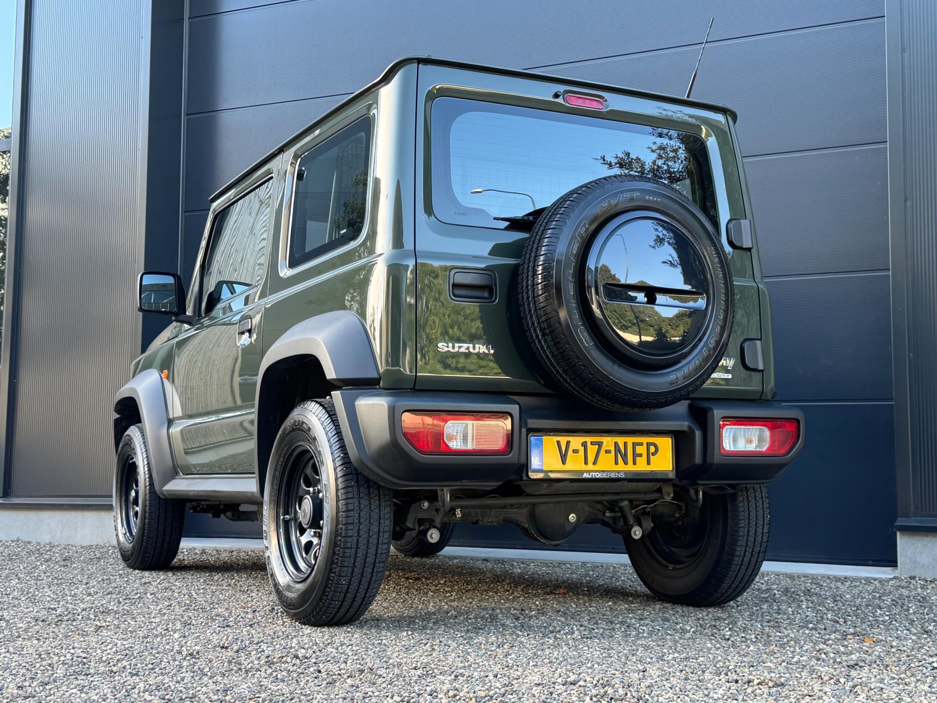 Een Suzuki Jimny zoals hij hoort te zijn in de mooie groene kleur 'Verde Jungle'. Grijs kenteken, marge (komt dus geen btw meer bij).