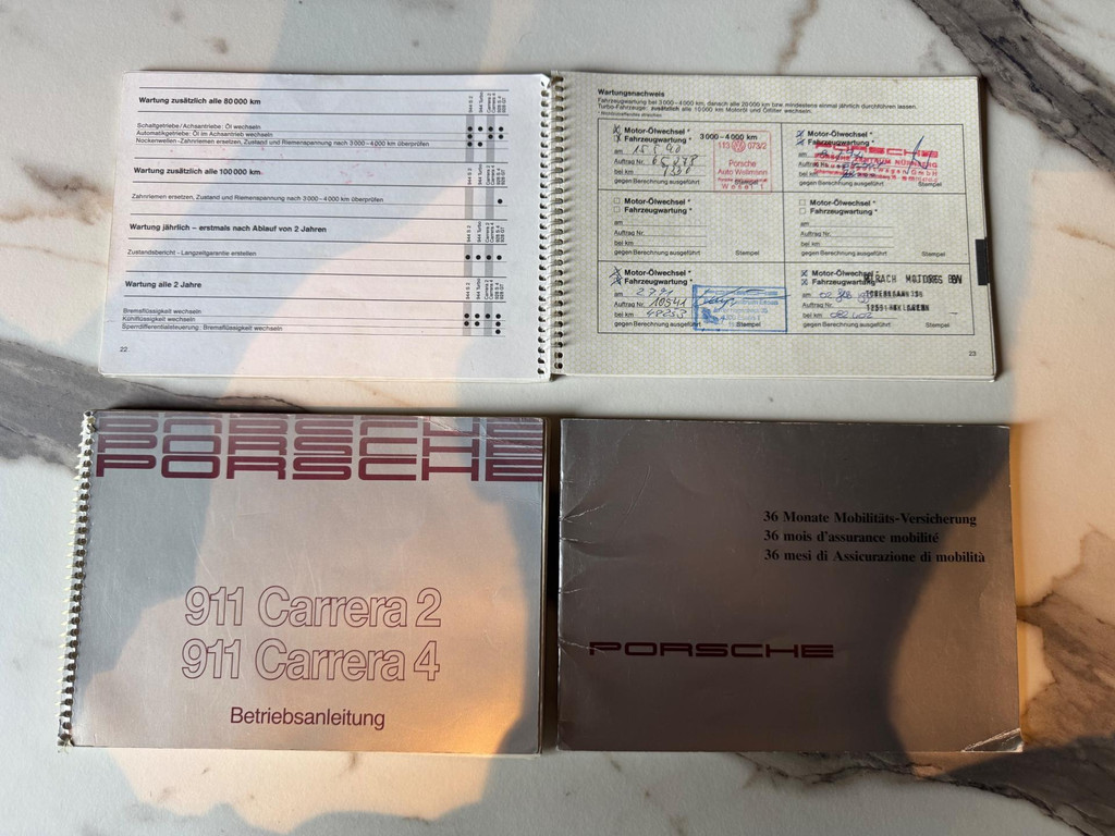 Het hier aangeboden exemplaar werd in 1990 nieuw geleverd in Zwitserland en kwam in 1994 naar Nederland en heeft een volledige (dealer) onderhoudshistorie. Alle onderhoudswerkzaamheden zijn uitgevoerd bij de officiële Porschedealer en Porsche specialist. Alles keurig bijgehouden in het onderhoudsboekje en ook de NAP van de afgelopen 30 jaar loopt netjes op. De laatste beurt (inclusief 12 bougies) vond 300km geleden plaats bij Porsche Specialist de Bock in juli 2024. De Michelin Pilot Sport banden zijn nieuw en gemonteerd op een set fraaie Fuchs velgen, dus ook daarop is geen geld bespaard. Gewoon een heel net exemplaar waar volgens de eigenaar de kop ooit is gespoten vanwege cosmetische redenen. Een van de vorige eigenaren had de auto 18,5 jaar in bezit!