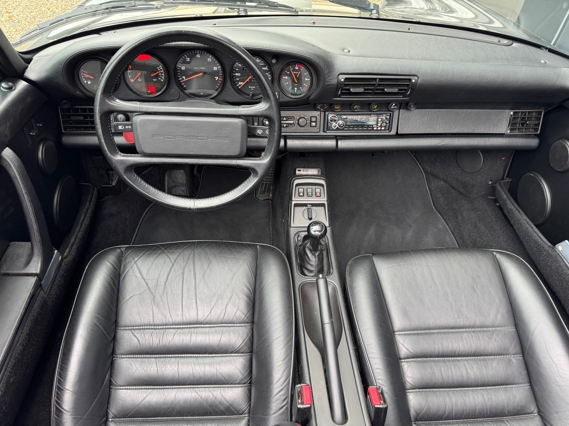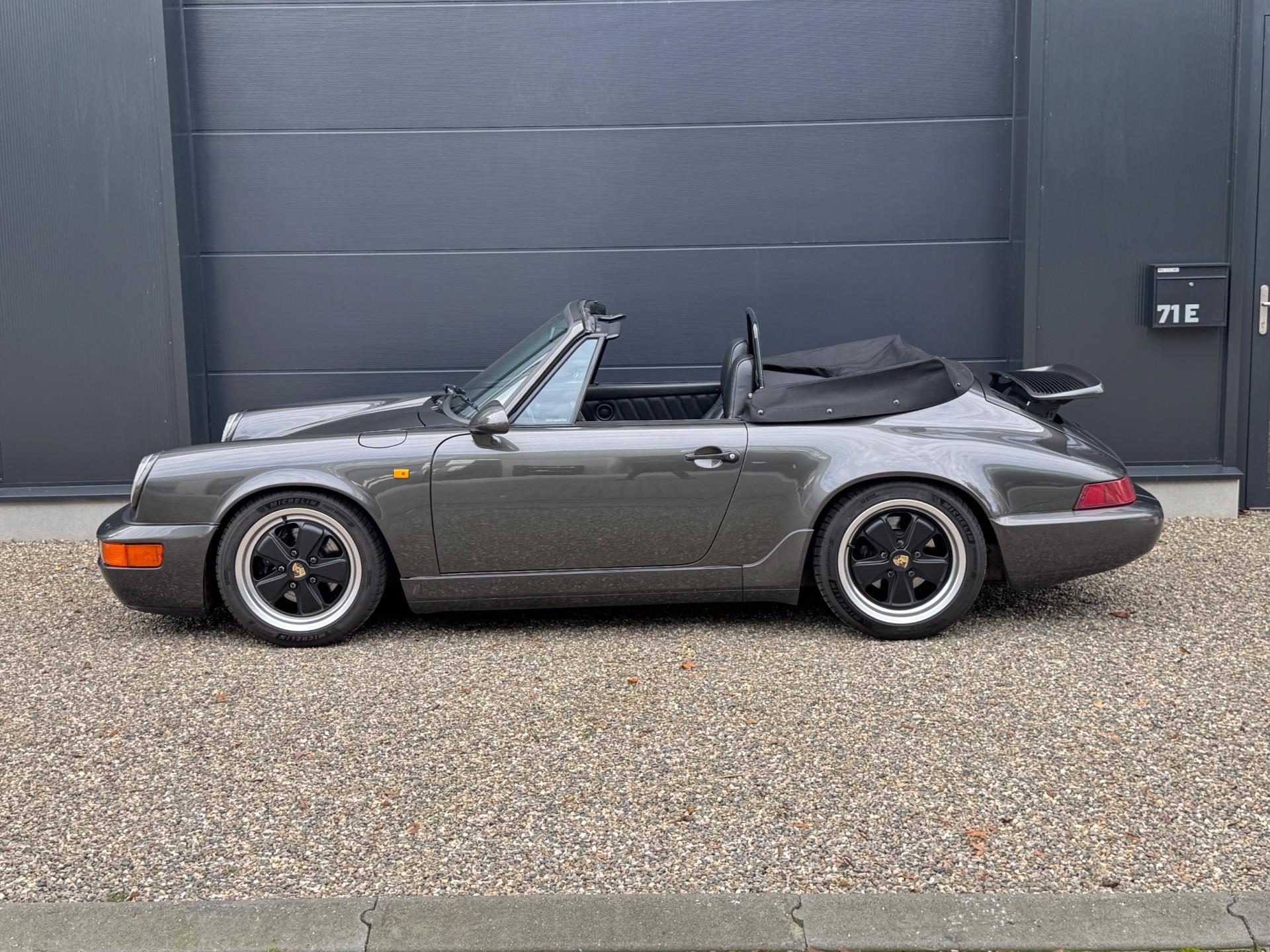 Deze 964 cabriolet verkeert in zeer nette staat, zie ook bijvoorbeeld de duidelijk zichtbare puntlassen bij de aanhechting van de achterschermen. De banden zijn nog helemaal vers en hebben nauwelijks slijtage. Verder zijn er geen lekkages aan de motor en remt en stuurt de 964 zoals het hoort.